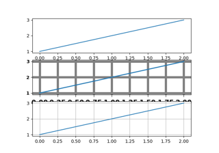 axes.Axes.grid.Die Achse wird als eine Einheit gezeichnet, daher wird der effektive zorder für das Zeichnen des Gitters durch den zorder jeder Achse bestimmt, nicht durch den zorder der