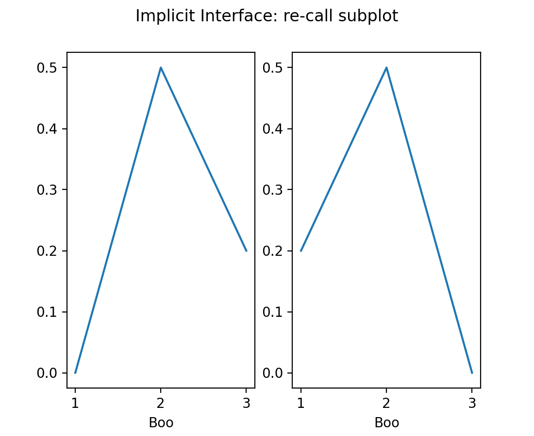 plt.suptitle('Implicit Interface: re-call subplot')