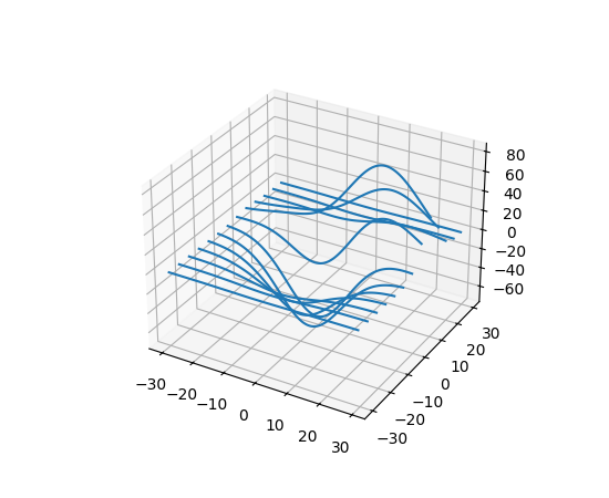 Adam Hughes hat die Unterstützung für plot_wireframe von mplot3d hinzugefügt, um nur Zeilen- oder Spaltenlinien-Plots zu zeichnen.
