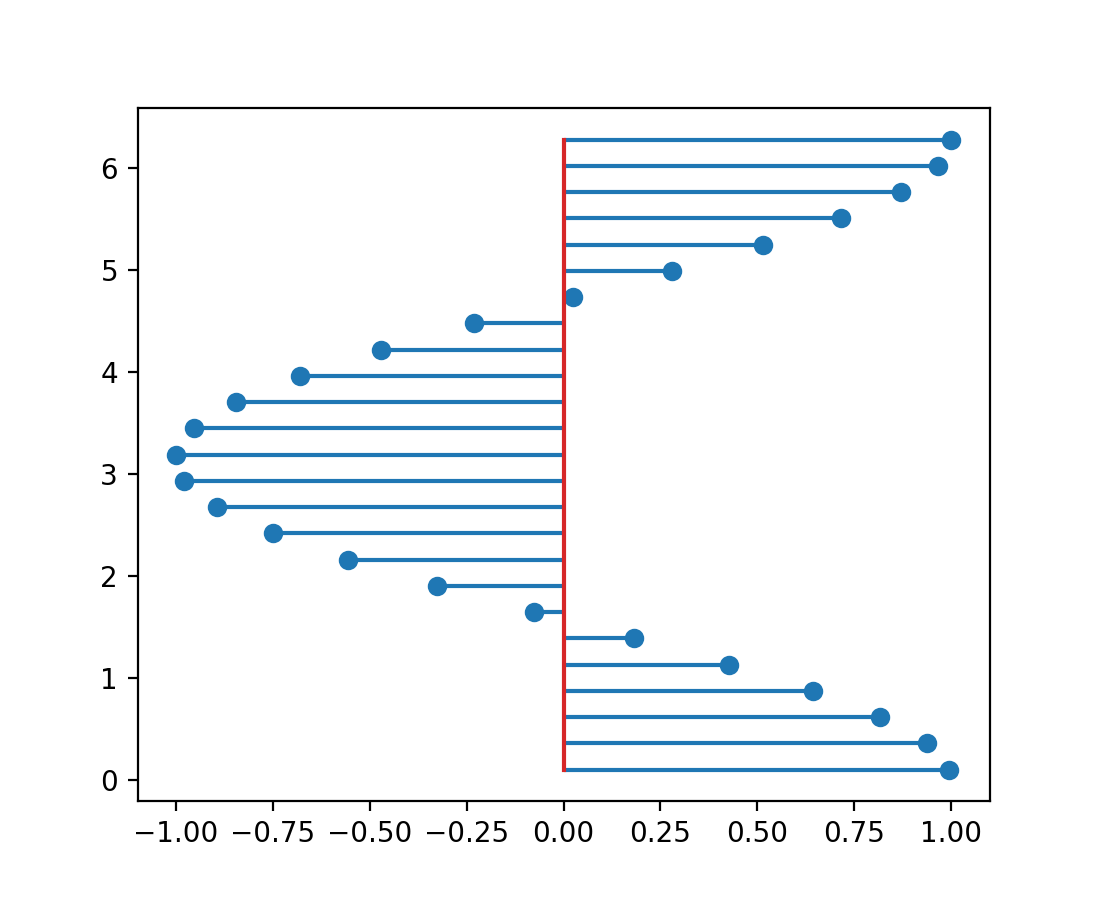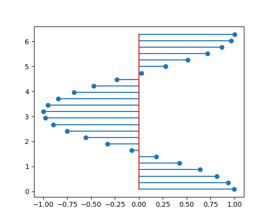 Standardmäßig sind Stem-Linien vertikal. Sie können mit dem Parameter orientation von Axes.stem oder pyplot.stem auf horizontal umgeschaltet werden.