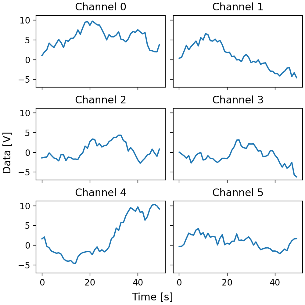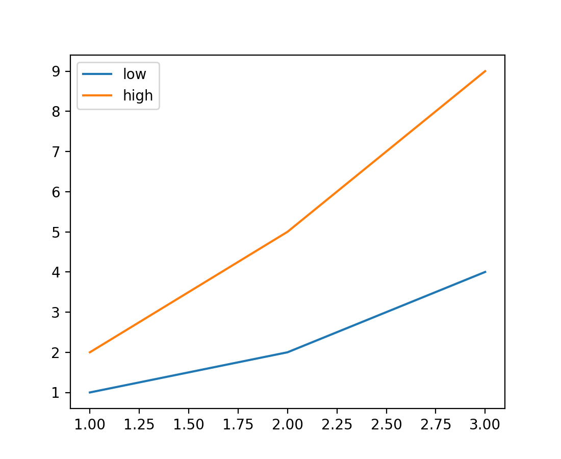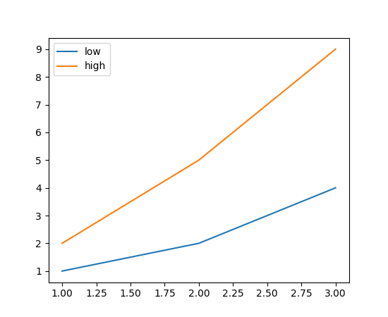 Beim Plotten mehrerer Datensätze durch Übergabe von 2D-Daten als `y`-Wert an `plot` können Beschriftungen für die Datensätze als Liste übergeben werden, deren Länge der Anzahl der Spalten in `y` entspricht.