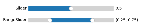 widgets.RangeSlider ermöglicht die Erstellung eines Schiebereglers, der einen Bereich und nicht nur einen einzelnen Wert definiert.