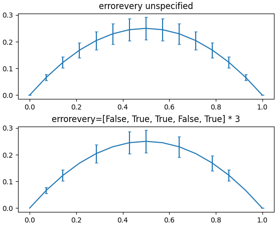 Ähnlich wie beim markevery Parameter für plot kann der errorevery Parameter von errorbar jetzt Slices und NumPy Fancy-Indizes (die mit der Größe von x übereinstimmen müssen) akzeptieren.