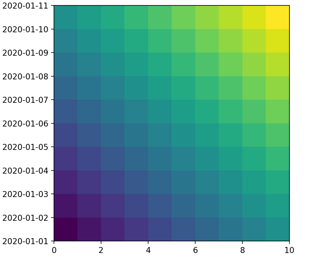 ax.imshow(arr, origin='lower', extent=[0, 10, date_first, date_last])